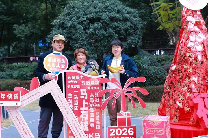 小区出入口矗立起 3 米高的红包山,业主写下新年愿望装入红包亲手悬挂,摇曳的红包袋成为社区最亮眼的新春风景。