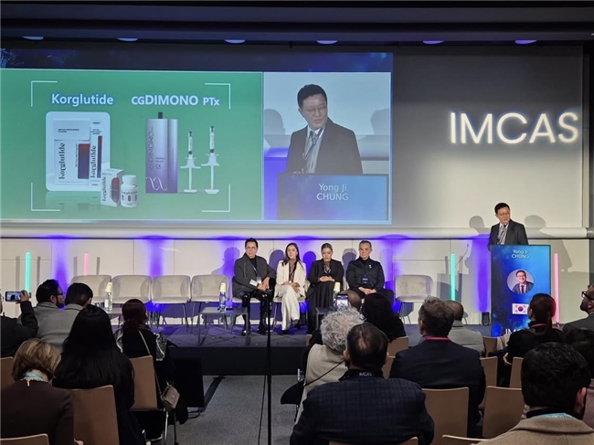 IMCAS大会首日,凯健集团创始人兼首席科学家郑镕池博士(Dr. Yong Ji CHUNG)在251会议室主持了专题研讨会,其围绕“肽技术在医美与健康管理中的创新应用”,系统阐释了集团在仿生肽机制研究、成分开发与临床验证方面的科研路径,吸引多位国际临床医师、科研人员及业内人士聆听。