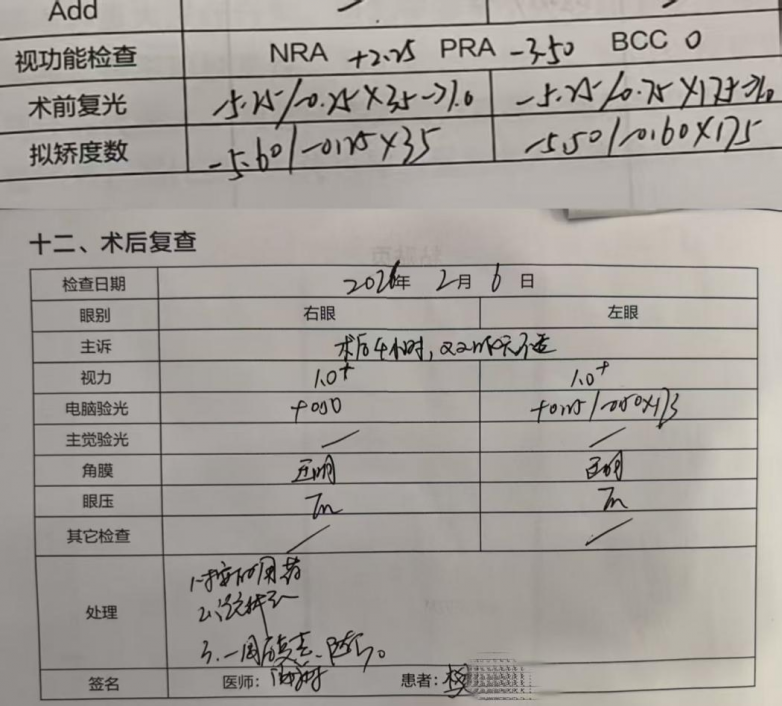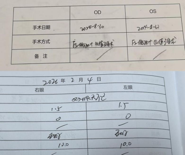 (图一:陆同学术2024年手术方式及2026年复查数据如图所示)