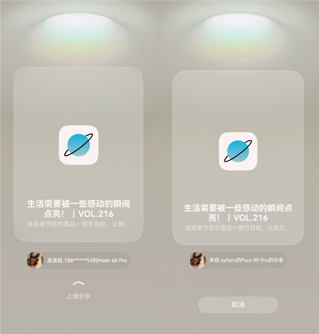 挖到心仪的播客,想第一时间分享给家人朋友?不用复制链接、不用扫码、不用等加载,两台鸿蒙手机轻轻一碰,心仪播客节目即刻“直达”对方设备;或者隔空一抓一放,内容瞬间传送,像变魔术一样自然。这个春节,让好声音在亲友间“碰”出共鸣。