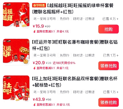 另外,还推出了红包、春联、鼠标垫等一系列周边,更加烘托出“旺上加旺”这一新春主题,满足了消费者在节日期间对产品社交属性、打卡价值与情感慰藉的多重期待。