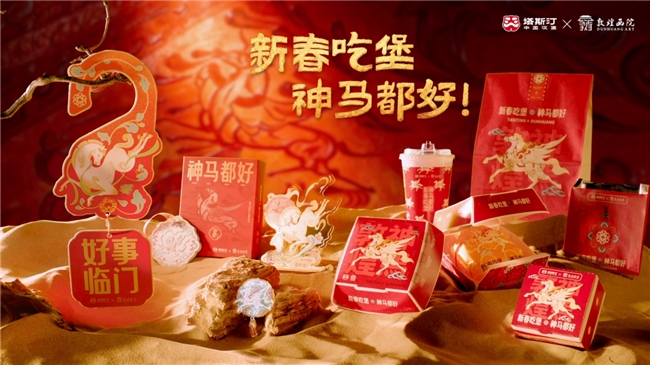 塔斯汀×敦煌画院:联名推出马年限定周边和包材,将敦煌神马的灵动线条与吉祥纹样,创新应用于品牌的春节营销中。让消费者在享受美食的同时,也能感受到一份来自敦煌的新春祝福。