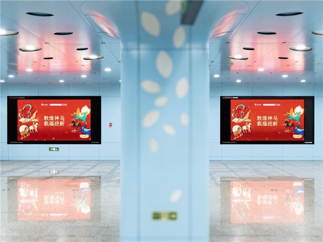 此外,敦煌画院携“敦煌神马”系列,联合高和传媒、北京地铁通成、凤凰都市传媒等伙伴,在全国多条高铁列车、地铁线路以及北京、成都、重庆等多个城市核心商圈户外大屏,联合数英平台推出联名贺岁海报,同步呈现来自敦煌的千年祝愿,为新春增添了一抹浓厚的文化色彩。
