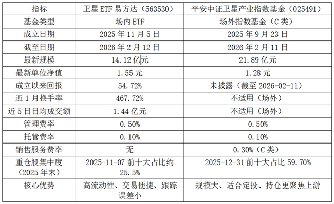 导语:截至2026年2月12日,卫星ETF易方达(563530)与平安中证卫星产业指数基金(025491)是当前市场上最具代表性的两只卫星产业主题基金,均紧密跟踪中证卫星产业指数(931594.CSI)。