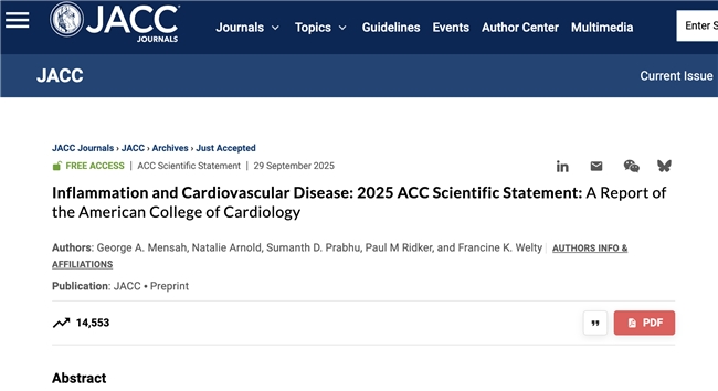 2025年9月底,美国心脏病学会(ACC)发布了具有里程碑意义的声明——慢性炎症是与高胆固醇、高血压并列的心血管疾病核心驱动因素,这一结论彻底刷新了人们对心血管疾病诱因的认知。
