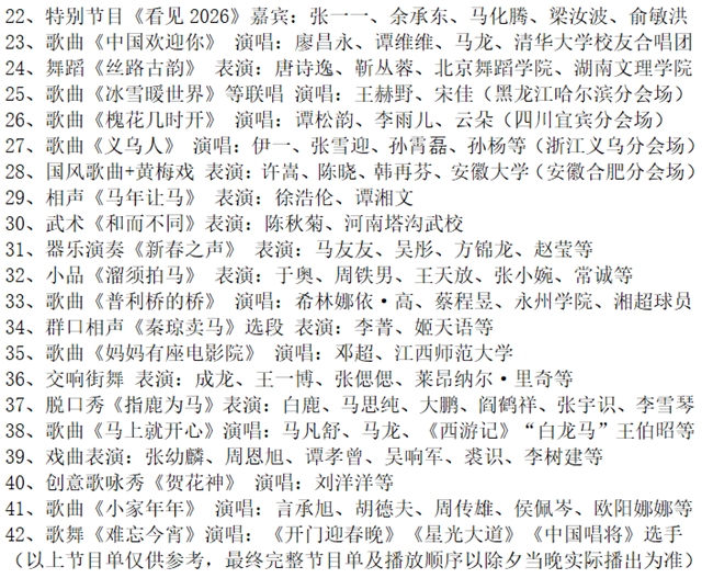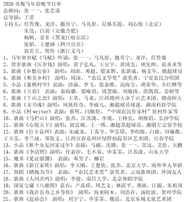 2026央视马年春晚节目单