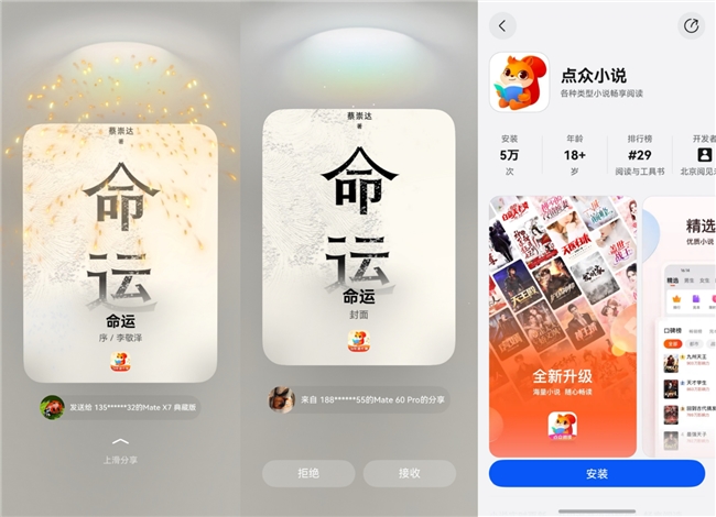 分享时若对方未安装鸿蒙版河马剧场/点众小说/繁花剧场,系统将自动跳转至应用市场详情页,点击下载即可火速入坑。