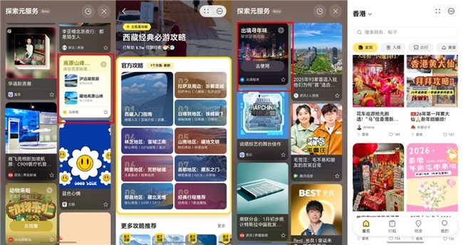春节假期宅家,想喝杯奶茶?奈雪点单、瑞幸咖啡的元服务点单卡片直接推送热门饮品,一键下单无需跳转;阅读卡片每周送上2本免费好书,让时光在书香里慢下来。想出门看电影,猫眼电影的元服务卡片提前推送热门影片排期、特惠购票信息,点击即可锁定座位。在你需要“放松”的时候,探索元服务替你安排妥帖。