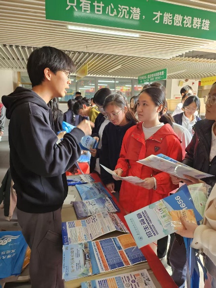 实践当天,线下活动从校园摆摊咨询拉开序幕。团队在校园内设置咨询点,向同学们发放招生宣传资料与纪念物资,耐心解答关于学校概况与专业设置的问题,在轻松交流中吸引了不少同学驻足了解。