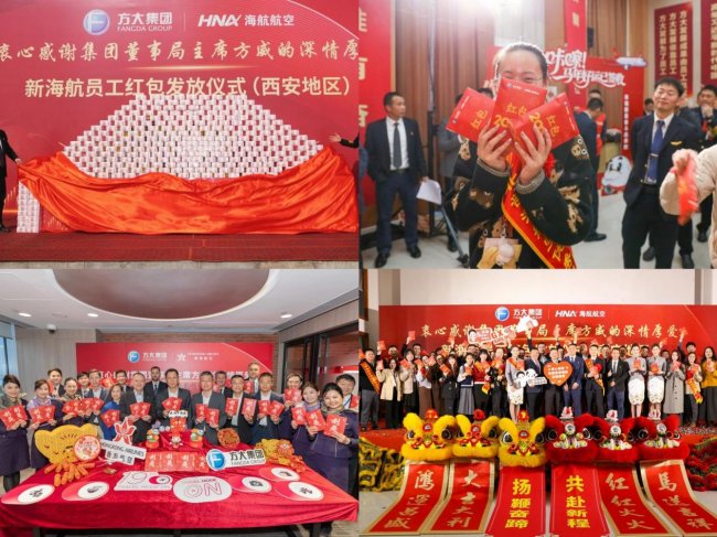 新春将至,新海航各子公司在全国各地再次垒起“现金墙”,这已经是新海航加入方大集团以来的第4次红包“盛宴”。这次红包发放总额超8亿元。盈利企业员工拿2万元,再加基本工资涨10%+3天带薪假,亏损企业的员工也能拿到5000元兜底。员工们士气大振,直言这波太实在,“薪”满意足!
