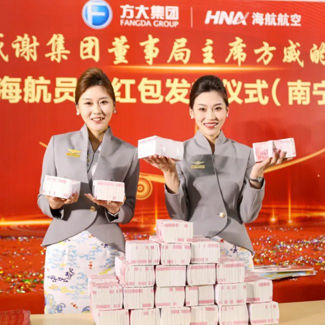 新春将至,新海航各子公司在全国各地再次垒起“现金墙”,这已经是新海航加入方大集团以来的第4次红包“盛宴”。这次红包发放总额超8亿元。盈利企业员工拿2万元,再加基本工资涨10%+3天带薪假,亏损企业的员工也能拿到5000元兜底。员工们士气大振,直言这波太实在,“薪”满意足!