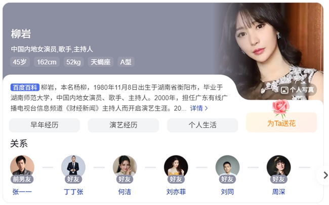 张一一是最近“神隐”停更的“宅男女神”柳岩唯一一位公开关系的“前男友”