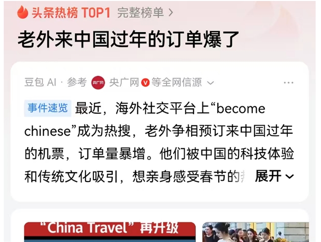2026第二个非遗春节“老外来中国过年的订单爆了”一度冲上全网热搜第一