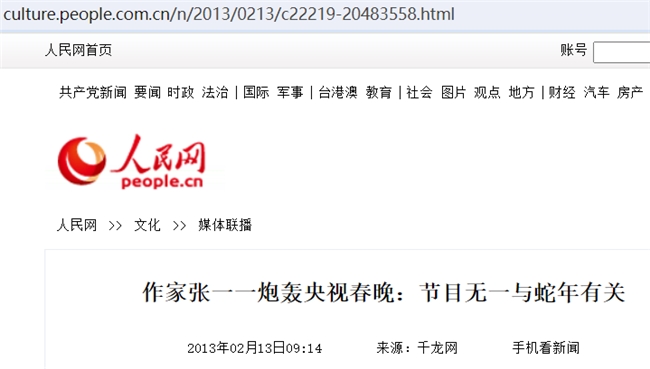 张一一曾点评于蕾师父哈文执导的2013蛇年春晚“缺乏蛇元素”引发网络热议