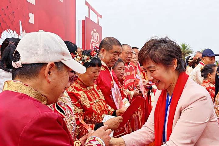 (防城港市民政局局长李新为夫妻代表送上爱的祝福)