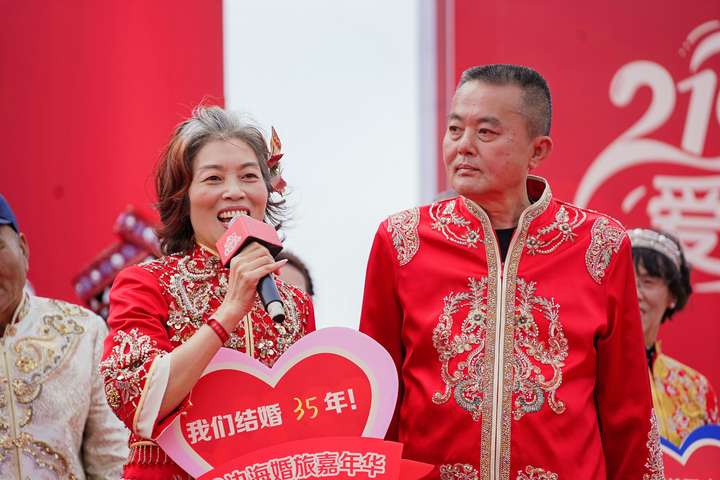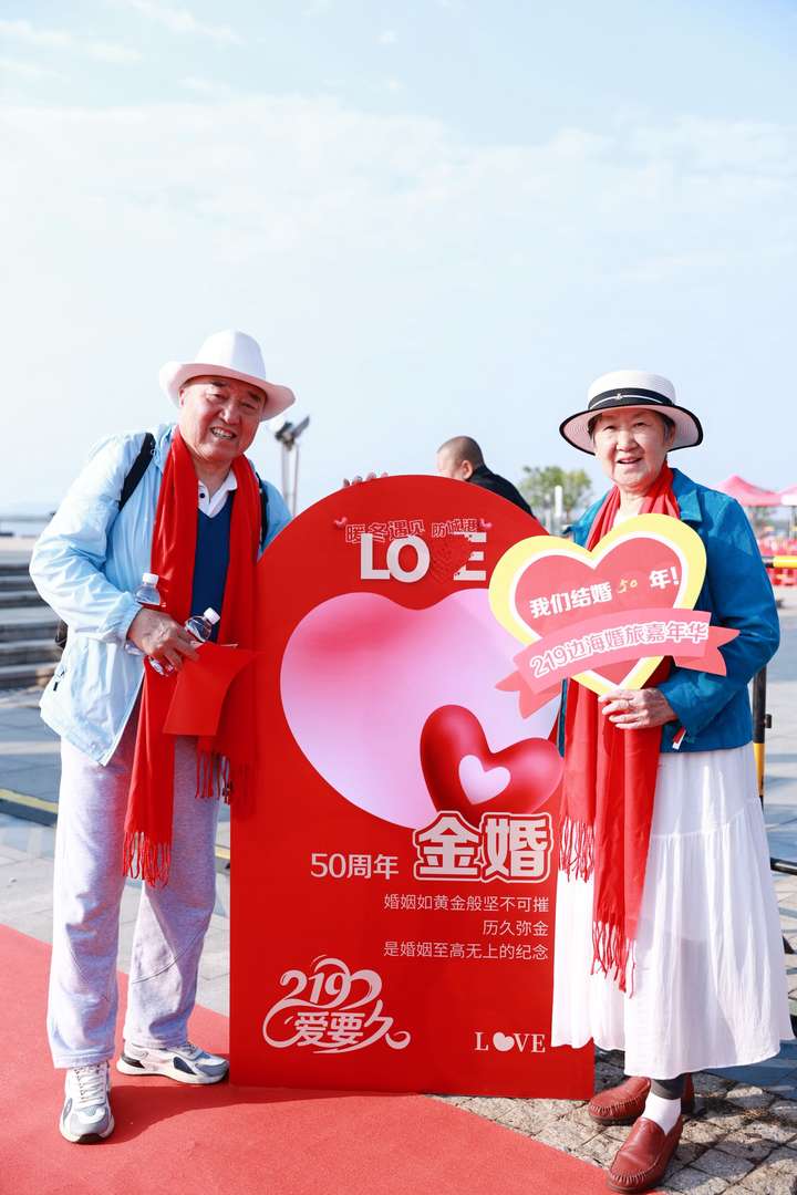 活动高潮环节,219对夫妻在碧海蓝天的见证下,并肩而立,手拉着手,齐声宣读爱的誓词。庄重的誓言在海风中回荡,场面宏大而感人,将活动的氛围推向了顶点。这不仅是简单的仪式,更是对“爱要久”最坚定的承诺。