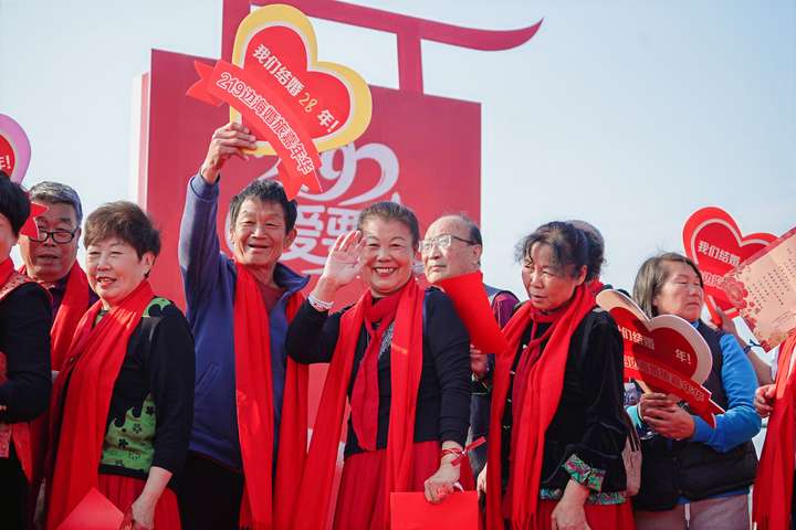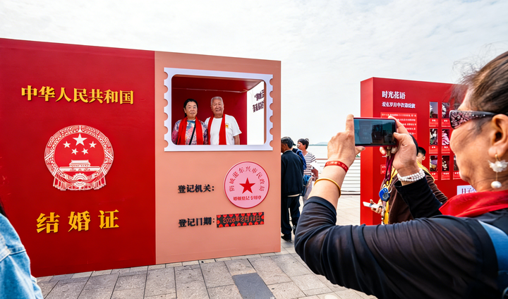 活动当天,氛围温馨而热烈。一对对甜蜜的爱侣,携手走在精心布置的浪漫主题大道上——从刚刚领证的新婚夫妻,到相濡以沫的金婚伴侣,他们缓缓走过这条象征爱情长河的步道。在众人的见证下,他们依次领取了具有特殊意义的婚书和寓意“喜相逢”的福利彩票,脖颈间温暖的红围巾,映衬着每个人脸上幸福的笑容,成为冬日里最动人的风景。