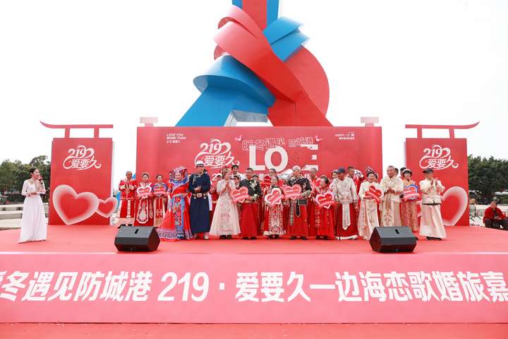 暖冬遇见“爱要久”!2月19日(正月初三),中越界河风景区山海相连地标广场暖意融融,防城港市“暖冬遇见防城港 219·爱要久 —— 边海恋歌”婚旅嘉年华活动成功举办。219对不同民族、不同婚龄的夫妻在此重温爱恋初心,这场以爱为名的盛大聚会,将婚姻登记的庄严仪式与文旅融合的创新场景相结合,让浪漫在这座边海城市热烈绽放。