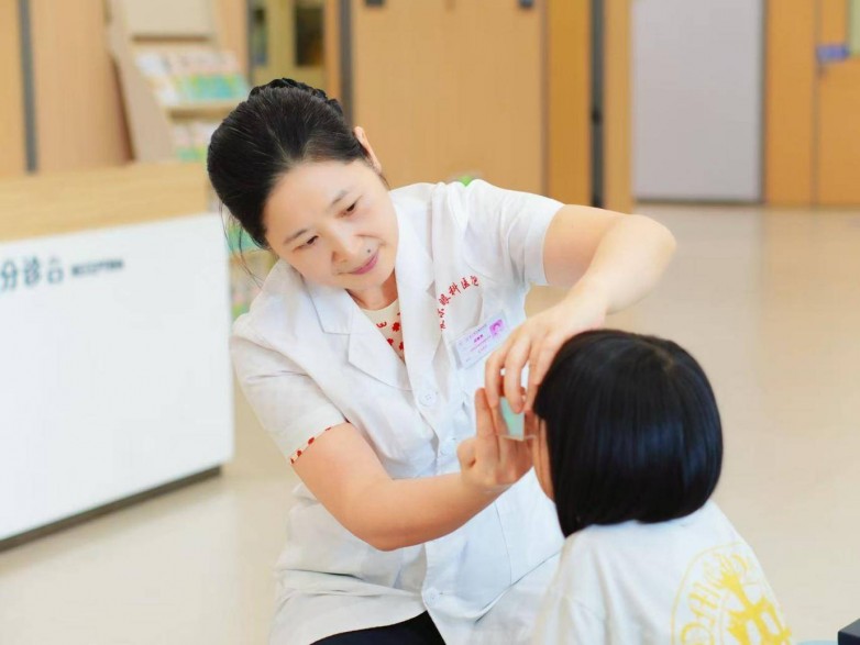 刚入院时,辰辰依旧延续着抗拒模式,对检查仪器避之不及,连主任的轻声问候都不愿回应。但斜视和小儿眼病科主任蒋春秀早已见惯了这类情况,她没有急于开展检查,而是先陪着辰辰玩起了玩具,用温和的语气聊着他感兴趣的话题,同时让护士姐姐用游戏化的方式,让辰辰慢慢适应诊室环境和医疗设备 —— 用 “数星星” 游戏练习固视,用温热的生理盐水模拟滴眼流程,每完成一个小步骤就给予小奖励。
