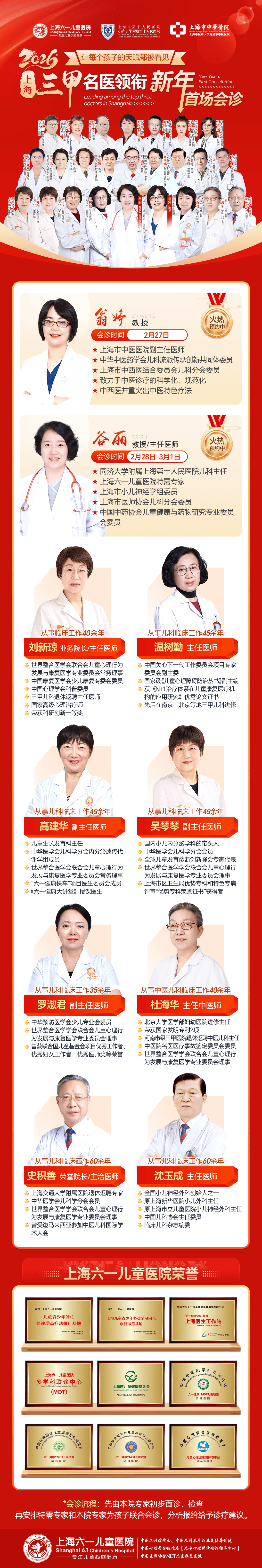 【新年首场】2月27日-3月1日上海市中医医院翁婷、同济大学附属上海第十人民医院谷丽莅临会诊,上海三甲儿科专家助阵“赢”春节的热闹渐渐远去,但医院里的温情仍在延续。这场寒假里的健康之约,如同一束温暖的光,照亮了患儿家庭的希望之路,有效缓解了家长们长期以来的焦虑与担忧。本次会诊号源有限,每日仅20名,有需求的家长请提前预约。