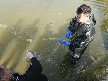 下水打捞鱼货