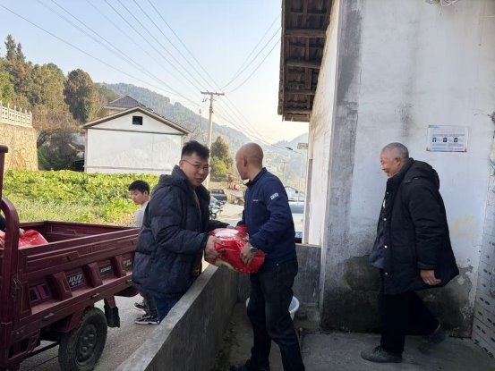 除了送上鲜活鱼货,瞻云酒业还心系村中高龄老人,为村子周边 8 户 70 岁以上的老人家庭,每户精心准备了 50 斤优质大米,将沉甸甸的关怀送到老人家中。一袋袋大米,承载的不仅是新春的美好祝福,更是对乡邻长辈的敬重与牵挂;一次次亲力亲为的善举,让公益走出形式,化作触手可及的温暖,融入乡邻的日常生活。