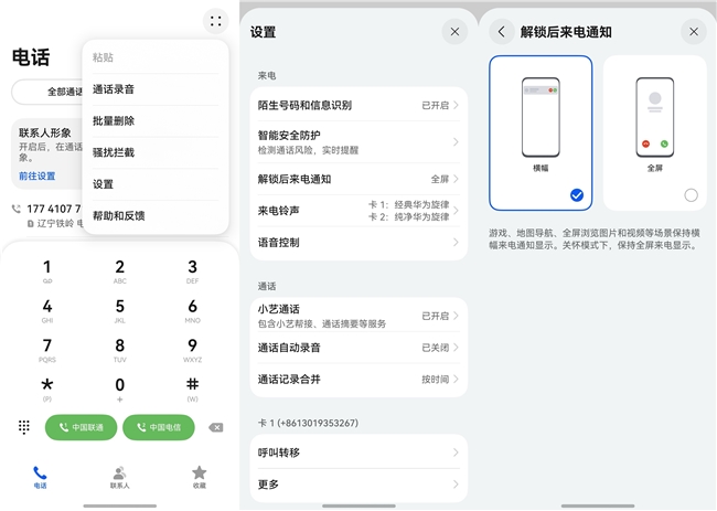 鸿蒙版微信的电话默认是开的,但手机系统电话和畅连通话得去电话应用设置里把来电提醒改成“横幅”模式才行。
