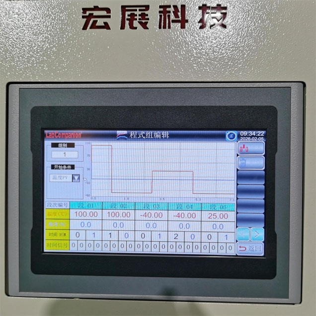 此外,产品搭载智能化控制系统,支持多段程式编辑、温湿度精准演算与数据记录,操作便捷且测试过程可追溯,可根据客户具体测试需求,定制专属技术规格与操作流程,充分体现宏展科技完善的产品线与强大的非标定制能力。