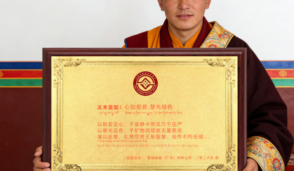热贡唐卡作为人类非物质文化遗产,其精湛的笔触与深厚的宗教文化内涵,是中华民族艺术的瑰宝。颁奖现场,“迦蓝弥朵”品牌代表与“雪域秘境”管理层共同为三十余位优秀画师颁发了定制的荣誉奖牌与纪念证书。这些奖牌不仅是对画师们日复一日研磨颜料、精益求精绘制佛卷的肯定,更是对古老技艺在当代社会活态传承的致敬。