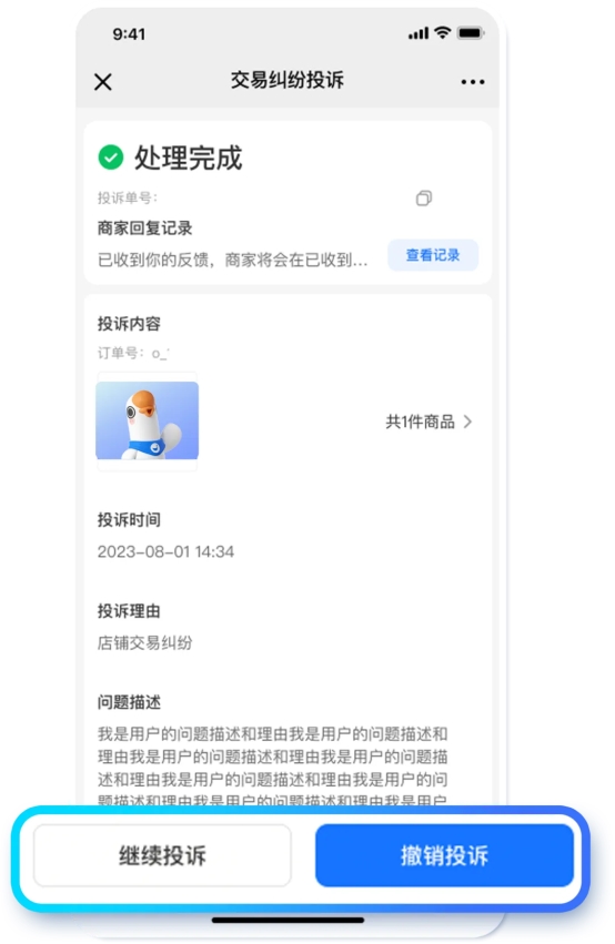 这一优化将原本线性、割裂的投诉处理流程,升级为可持续、可追溯的对话模式,既大幅减少商家处理无效、重复投诉的精力消耗,规范投诉处理流程,又保障了用户的沟通权益,有效降低后续纠纷概率,提升售后管理效率与用户满意度。