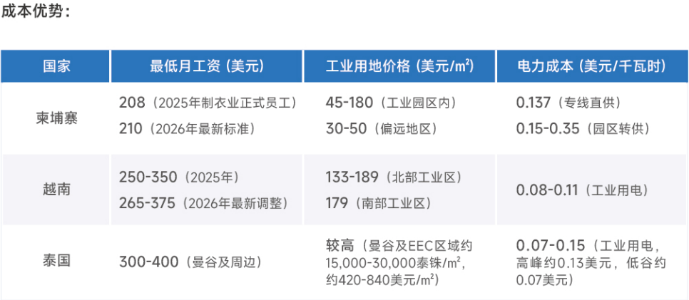 报告核心解码了柬埔寨“低成本+低关税+美元结算”的独特利润公式:2026年制衣业最低月薪仅210美元,偏远地区工业用地价格为越南的三分之一;作为东南亚通往欧美市场关税成本最低的国家之一,柬埔寨享有欧盟EBA零关税、美国GSP低关税等多项优惠,一家年出口欧美1000万美元的企业,选择柬埔寨可比越南每年节省超100万美元关税成本;同时中柬FTA与东盟AFTA的关税优惠,完美支撑“中国核心部件+柬埔寨组装”的产业模式;美元是当地日常流通货币,银行存贷款中美元占比达89%,更能为企业规避汇兑损失,实现资金自由流转。