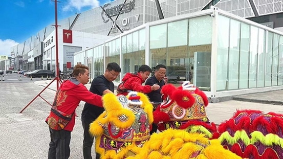 爆竹声不停,醒狮队伍化身 “金马送福使者”,穿梭于车城的每家商户之间,商户们纷纷开门相迎,“摸摸狮头,马年不愁;摸摸狮尾,顺风顺水”,醒狮的每一次腾跃、每一次叩拜,都将马年的吉祥好运传递给在场的每一位商户,为大家新一年的经营送上 “生意如骏马奔腾,财源似江河入海” 的真挚祝福,也让整个华南世纪车城沉浸在财源广进的氛围中。