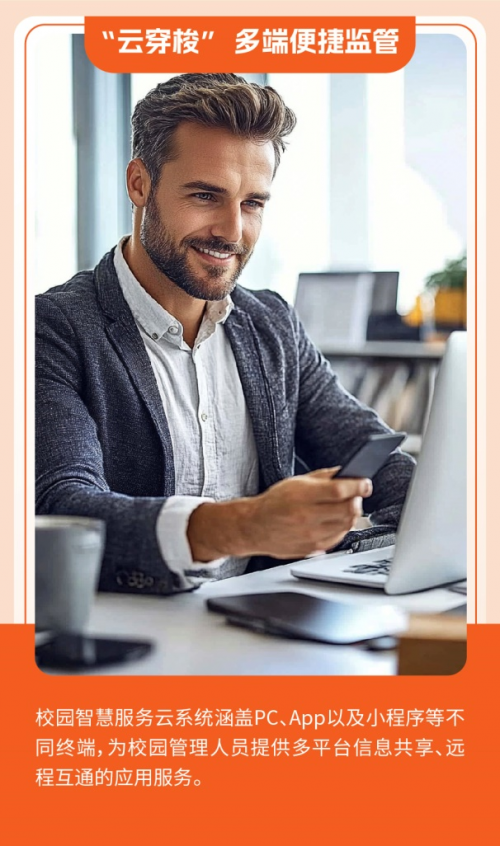 校园接入研祥ISCP智慧服务云系统后,无论身处何地,学校管理人员都能通过常用的终端设备,轻松访问校内各类服务。该系统能做到信息数据互联互通,人、设备、环境状态同步呈现,还可实现大数据分析,满足校内设备管理和运营需求。