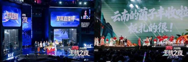 盛典晚会由汪涵领衔主持,张韶涵、刘宇及吴克群、明道、万妮达等上百位无忧高人气艺人达人同台。首创“直播间比拼+主舞台展演”模式,设“团播、音乐、舞蹈、助农电商”四组对决,观众通过实时弹幕投票决定表演者登台,全程互动热烈。