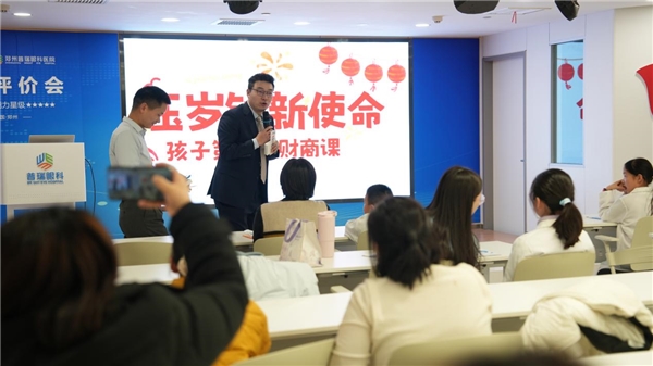 在轻松愉快的氛围中,中荷人寿的王老师为家长们带来了一场实用的理财分享。窗外雪花纷飞,室内交流热烈。王老师以“压岁钱新使命——孩子第一堂财商课”为主题,介绍了“四账户”模型:消费账户、梦想账户、金鹅账户(投资)和应急账户,引导家长帮助孩子建立全面的金钱观与规划意识。贴近生活的内容引发家长共鸣,大家在关注孩子眼健康的同时,也收获了一份关于财富教育的暖心启发。