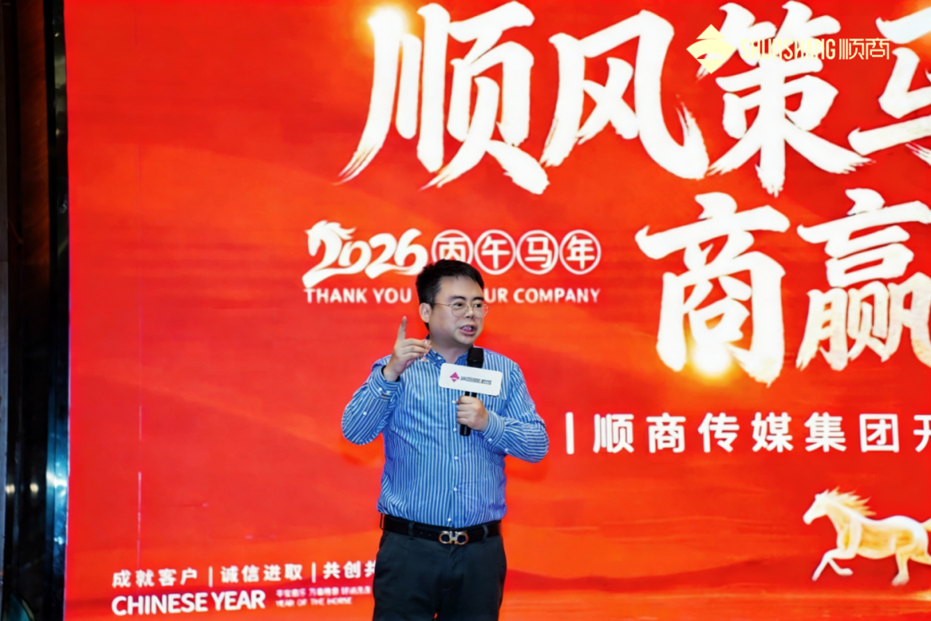 顺商传媒董事长王星彦先生发表重磅演讲《2026,渠道招商就找顺商》,明确企业定位、锚定发展目标,展现顺商在渠道招商领域的领军实力与2026年全新布局,铿锵有力、振奋人心。