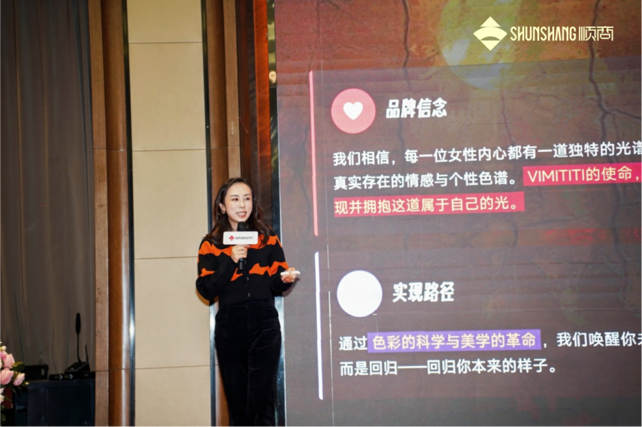 作为顺商传媒重点投资并孵化的高奢性感内衣品牌,VIMITITI维蜜甜甜CEO Nicole女士带来了主题为《一场源于“自由色彩”的性感探秘》的精彩分享。Nicole以独特的品牌视角与真切的创业感悟,传递自信、自由、热爱的品牌精神,充分彰显了顺商传媒在品牌孵化、产业赋能领域的雄厚实力,为现场增添了一抹亮眼而温暖的亮色。