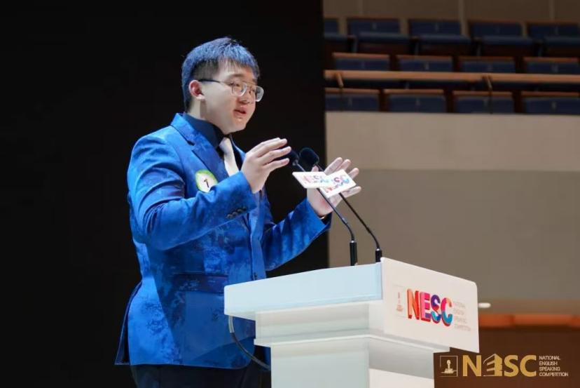图1 在“21世纪杯”英语演讲比赛总决赛中,金钊同学勇夺青年组冠军