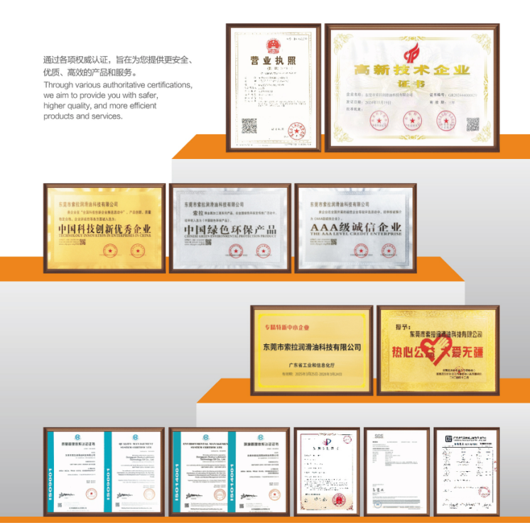 不少客户在了解索拉润滑油公司简介后都会惊讶,一家立足东莞的企业,能服务中石油、美的、伟创力、中国科学院等顶尖机构,靠的正是近 20 年的技术沉淀与品质坚守。公司以 “铸就百年索拉,成为全球第一金属加工油液供应商” 为愿景,一步一个脚印成长为行业标杆。