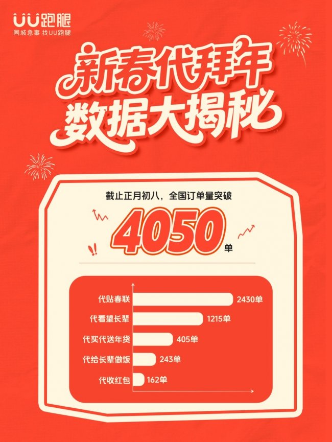 今年春节,UU跑腿温情上线的“代拜年”系列服务,不仅成为了异地游子传递心意的新方式,更以一份亮眼的战报,印证了即时零售从“送...