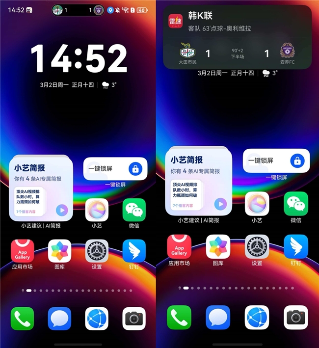 2026年是体育大年,足球世界杯、亚运会、青奥会……好戏一场接一场。鸿蒙实况窗和桌面卡片提前设置,比分、叫号、外卖进度会自动“挂”在屏上。你无需来回切换,更不必反复刷新,只管沉浸于赛事精彩,比分变化与配送动态在同一画面中实时呈现,关键进球和美味抵达都不会错过!