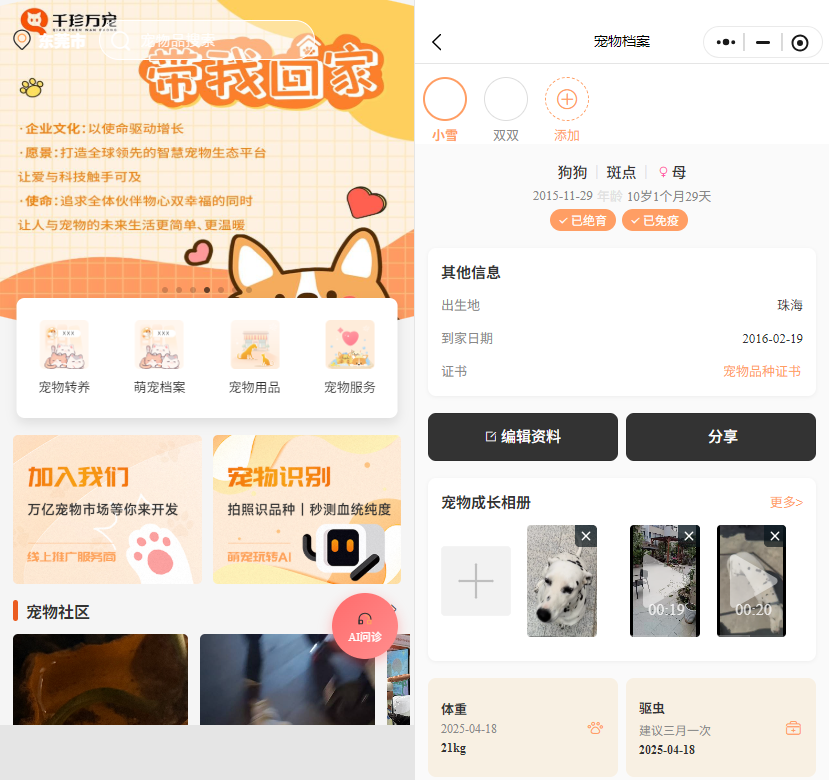 如果你也在找一个真正好用、全面、放心的宠物平台,不妨微信小程序搜索“千珍万宠”亲自体验。从今天起,让养宠变成一件轻松快乐的事,让爱与科技,真正触手可及。