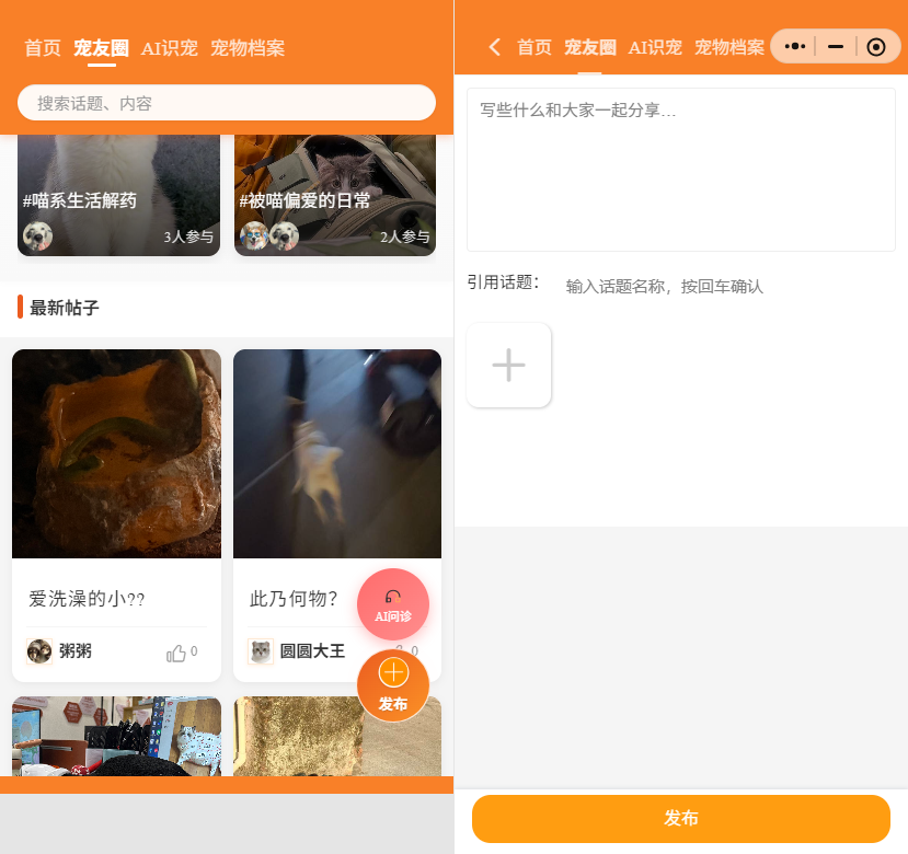养宠不只是照顾生活,更是情感陪伴与交流。千珍万宠特别打造带宠物社区功能的宠物平台,让宠主可以在这里晒宠物日常、分享养宠经验、交流喂养心得、求助问题、参与活动。不管是新手还是老手,都能找到志同道合的朋友,不再独自面对养宠难题。社区里还有专业小编、兽医、营养师定期科普,让宠物日常护理知识宠物AI平台真正落地,让科学养宠深入人心。
