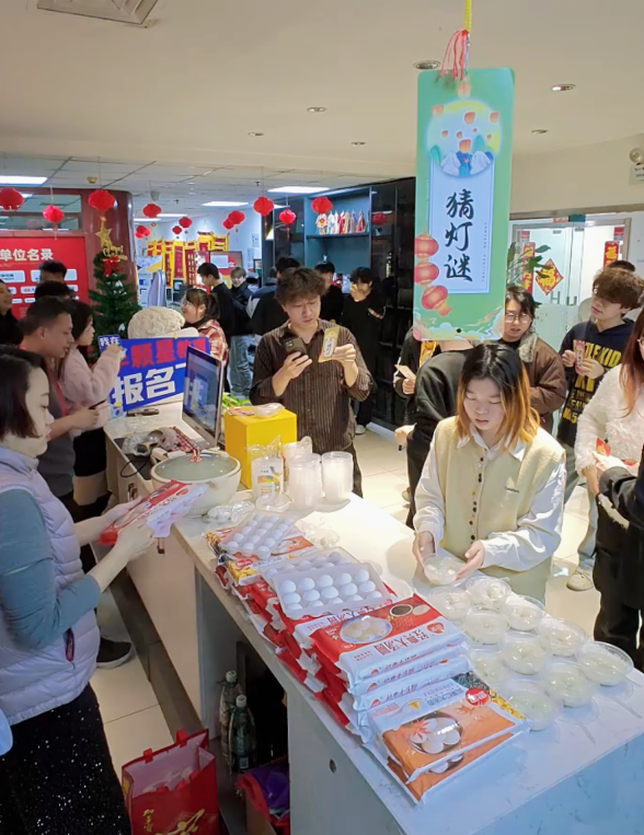 除了猜灯谜的重头戏,兑换礼物汤圆分享美食环节也是非常受欢迎。