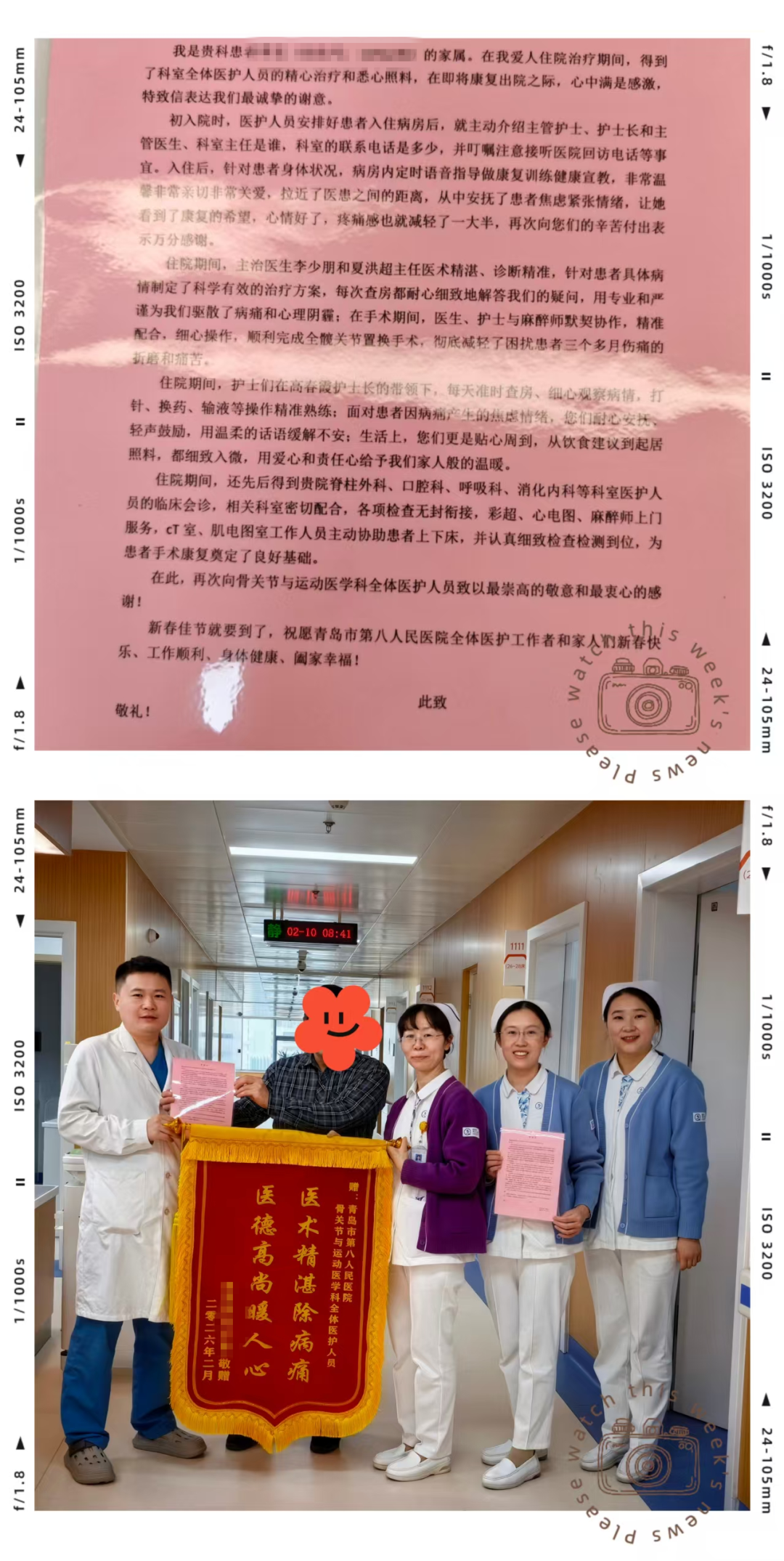 近日,青岛市第八人民医院东院区骨关节与运动医学科收到了一份特殊的新春礼物——患者家属蒋大叔亲手送来了锦旗和长篇感谢信。红缎金字的锦旗写着“医德高尚暖人心,医术精湛除病痛”,而那一封感谢信,则记录了一段医患之间从陌生到信任、从诊疗到治愈的温暖历程。