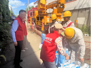 图为苏州分公司志愿者为电力工人送上清凉物资