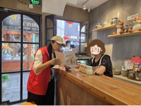 志愿者向商户王阿姨讲解金融安全知识