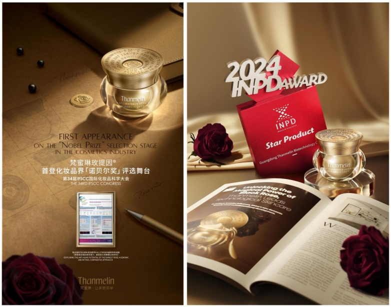 2024年,玫提因®抗衰机理研究入选第34届IFSCC全球化妆品科学大会,并获法国巴黎国际化妆品创新匹亚大赛“INPD国际创新产品奖”,成为获此殊荣的国货抗衰单品之一;