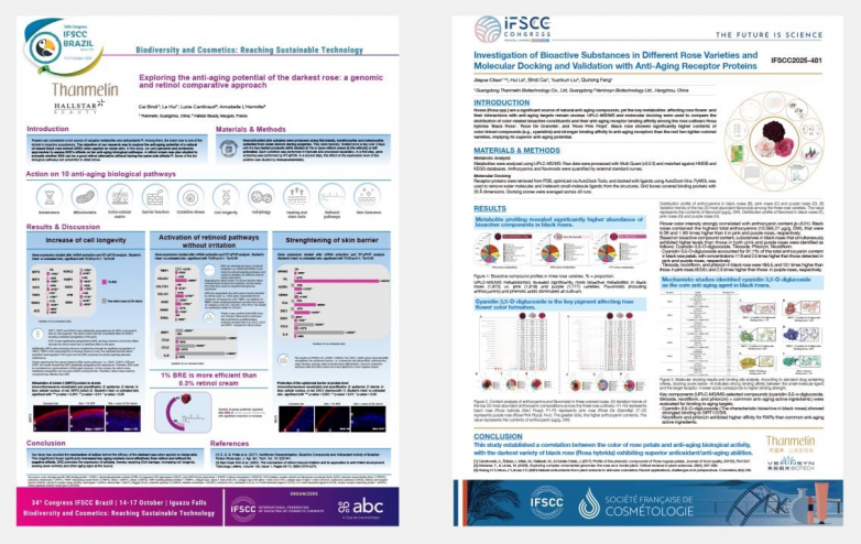 2025年,梵蜜琳针对黑玫瑰活性本源的深度研究再次被第35届IFSCC大会收录,揭示其与SIRT家族长寿蛋白、视黄酸受体等抗衰靶点的高效结合机制,从分子层面阐释了多靶点、高效率的抗衰潜力。