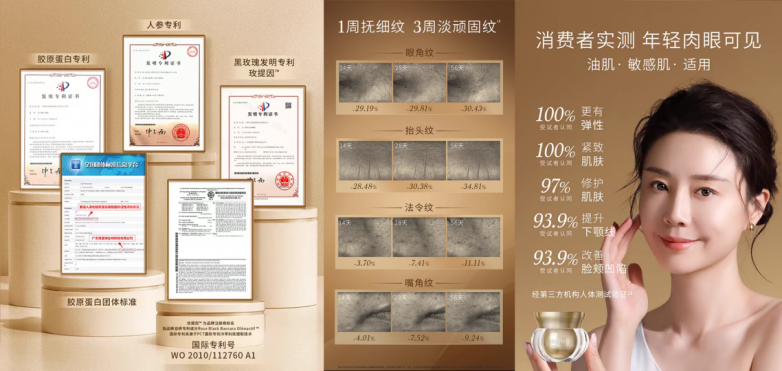 经SGS机构人体实测,连续使用28天后,97%的受试者认同肌肤修护效果显著,93.9%的受试者感受到下颚线提升与脸颊凹陷改善。这一数据印证了产品从实验室到消费端的科学转化能力。